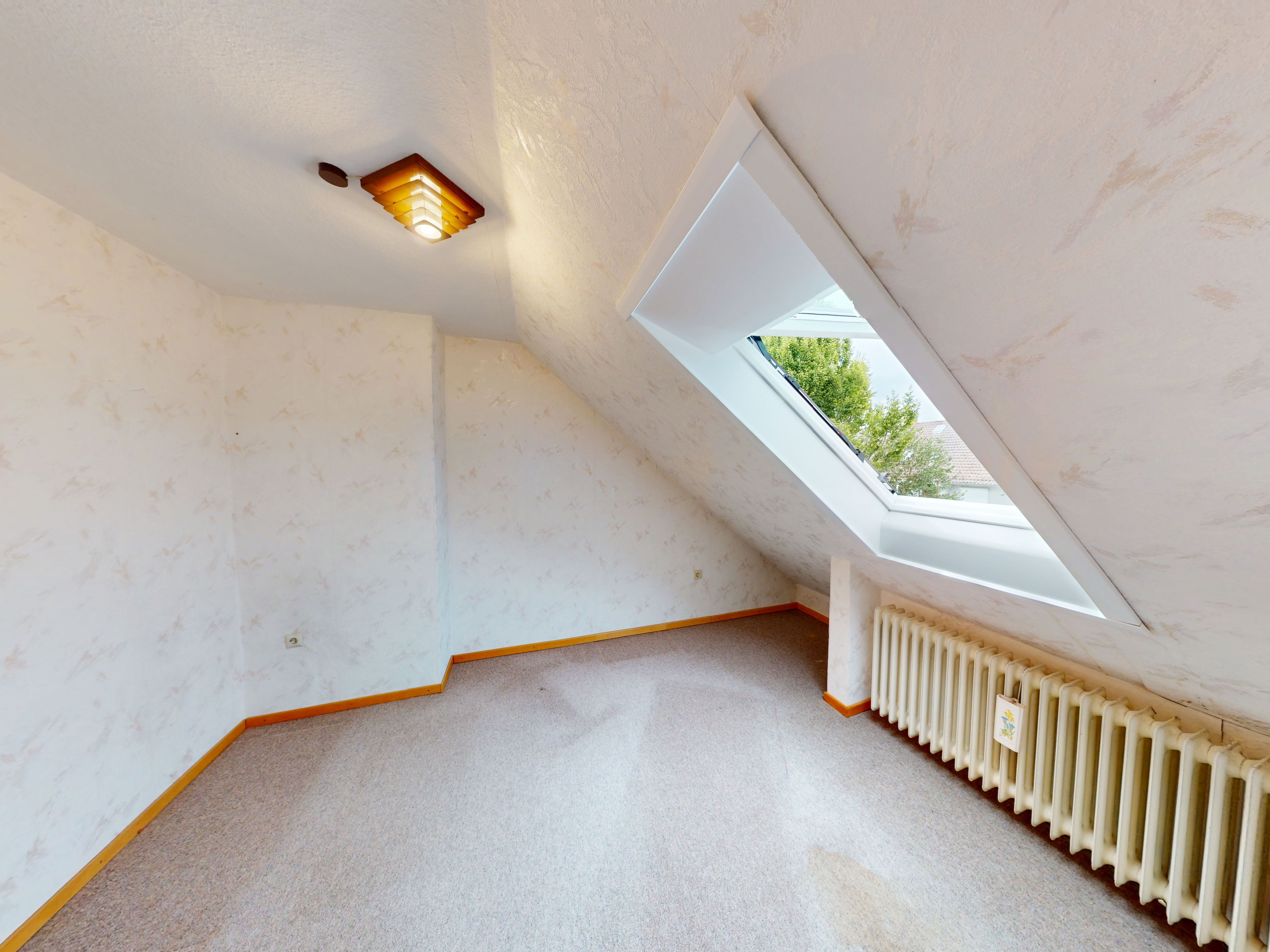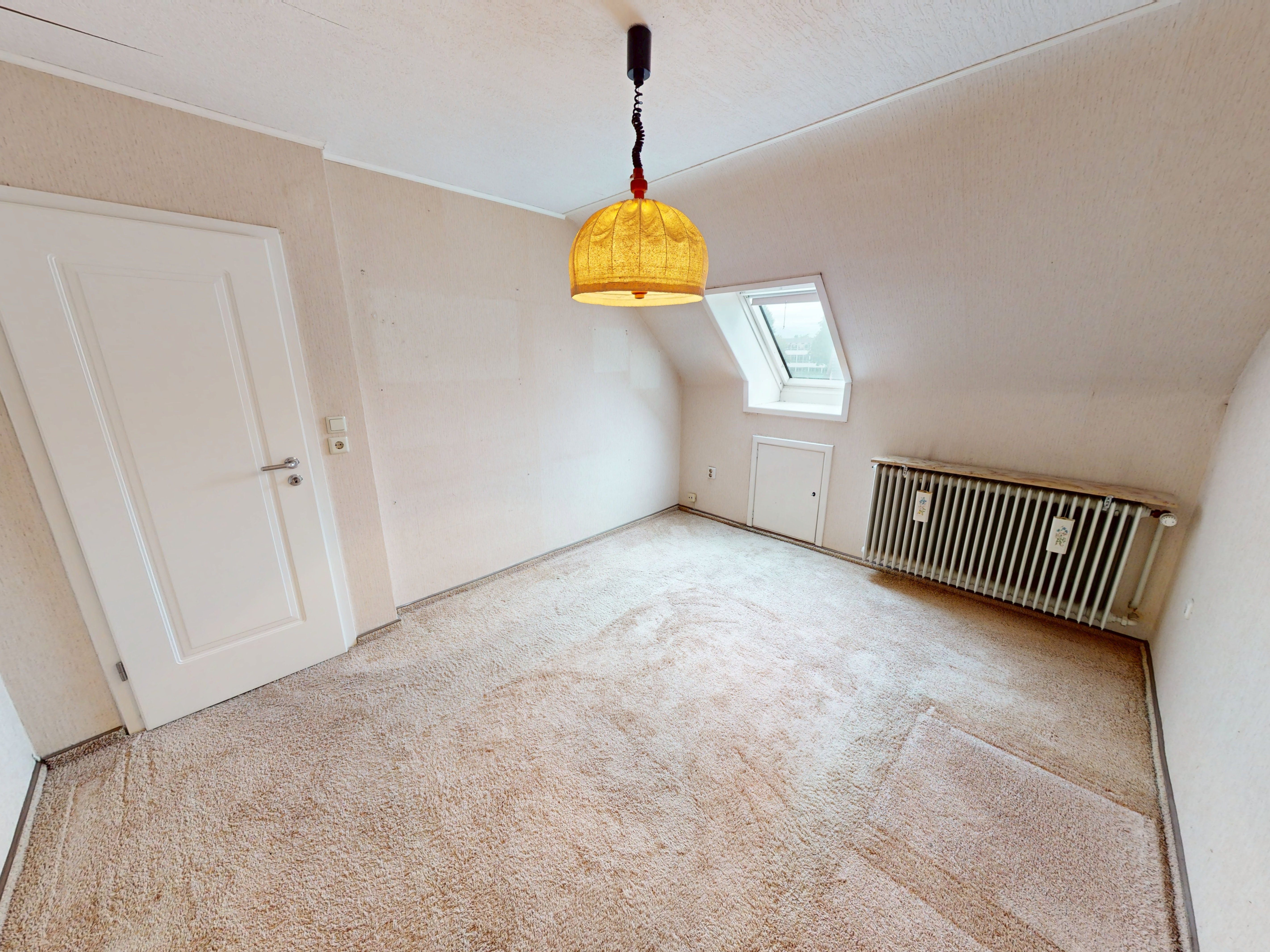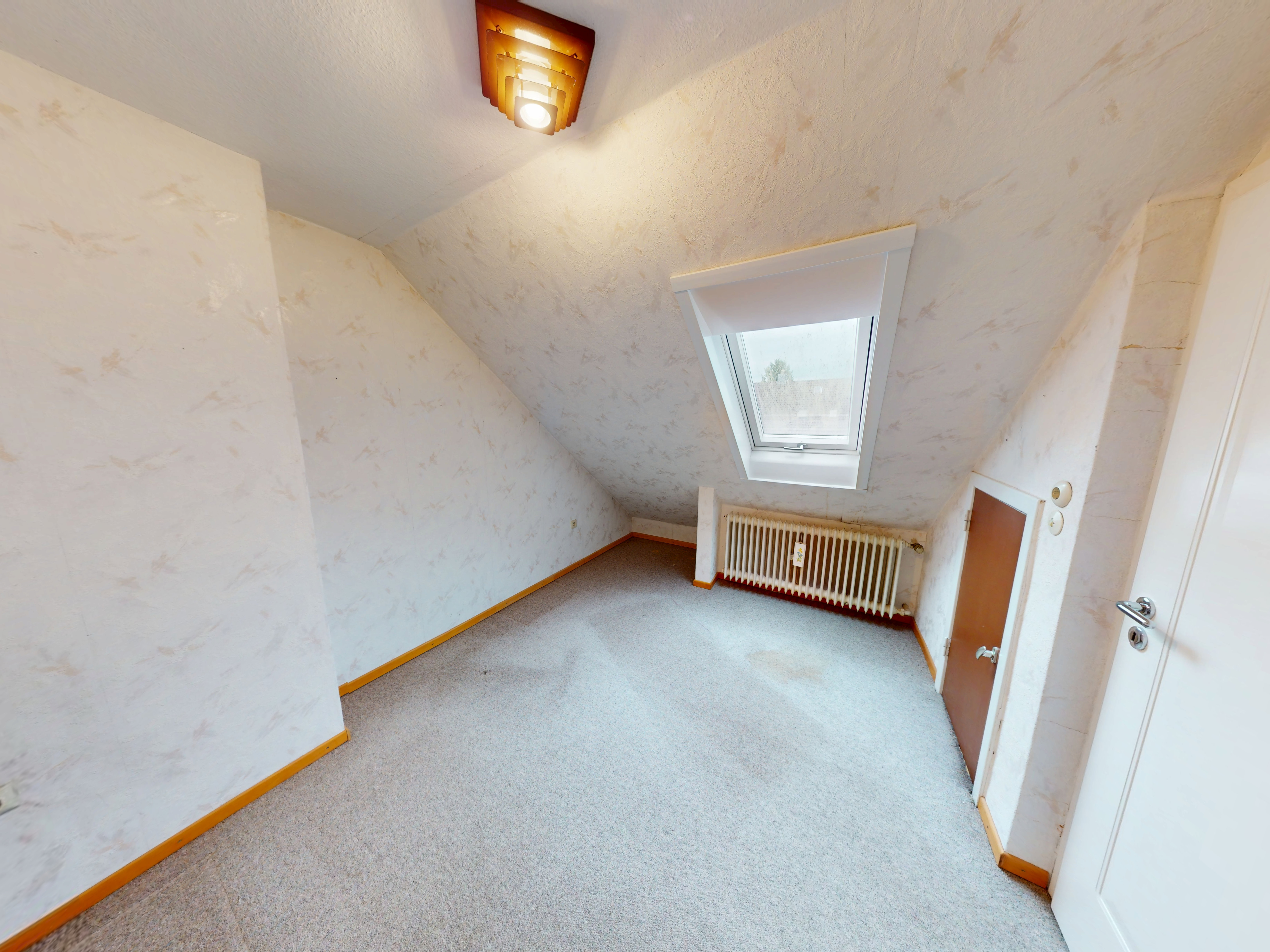 Im Erdgeschoss erwartet Sie ein heller Wohnbereich mit direktem Zugang zum Garten, dazu eine praktische Einbauküche und ein Gäste-WC. Im Obergeschoss stehen zwei gut geschnittene Schlafzimmer, ein zusätzliches kleines Zimmer sowie ein Tageslichtbad zur Verfügung. Im Dachgeschoss bieten drei weitere Räume flexible Nutzungsmöglichkeiten – ob Kinderzimmer, Homeoffice oder Hobbybereich. Eine begehbare Abseite mit Fenster sorgt hier für nützlichen Stauraum.