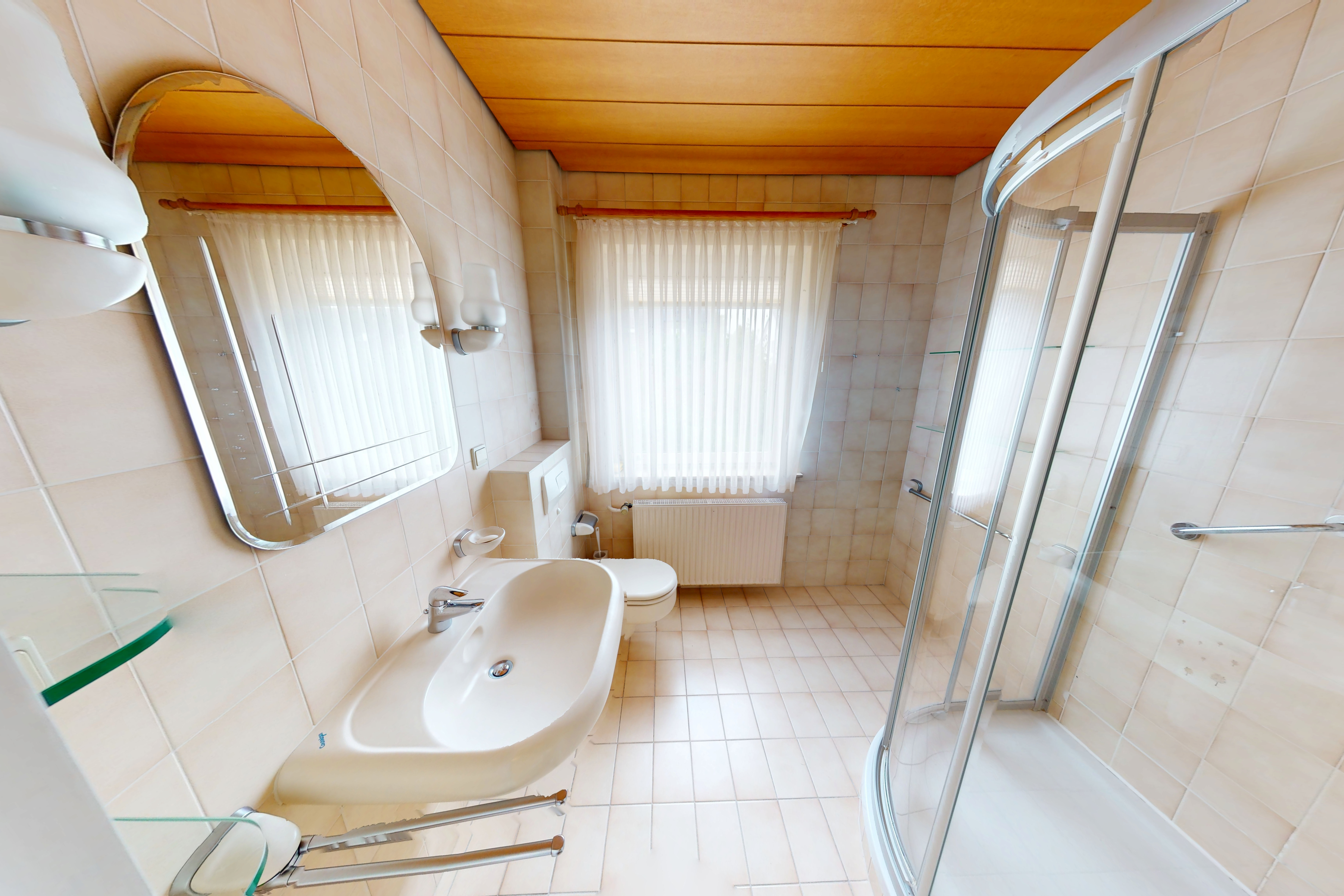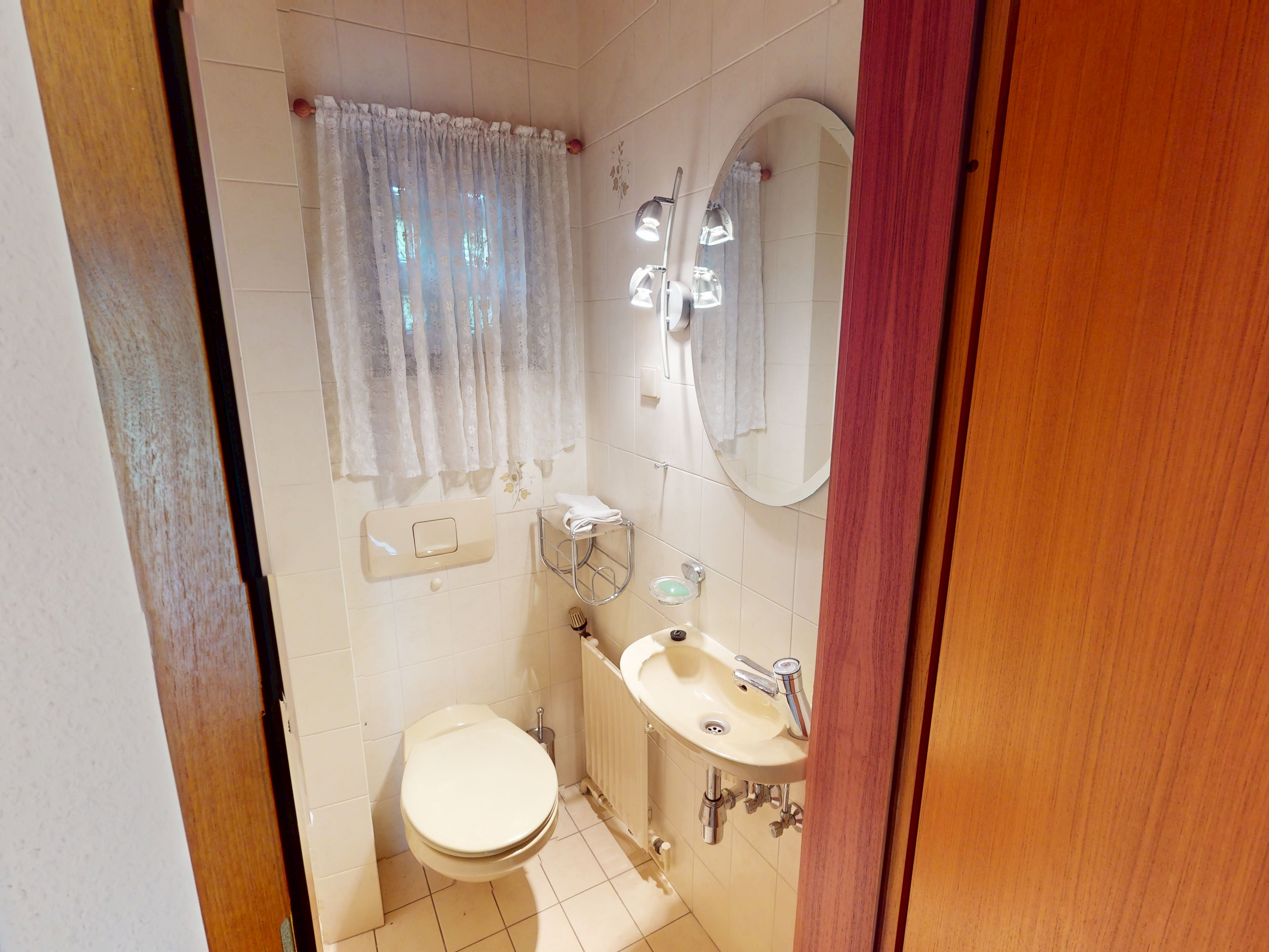 Die Wohnräume sind überwiegend mit Teppichboden ausgestattet und vermitteln eine behagliche Atmosphäre. Besonders schön sind die neuwertigen Innentüren aus Vollholz, die im Erdgeschoss teilweise mit Glaseinsätzen versehen sind und viel Helligkeit ins Haus bringen. Das Gäste-WC im Erdgeschoss verfügt über ein Fenster, ebenso das Tageslichtbad im Obergeschoss mit Dusche.